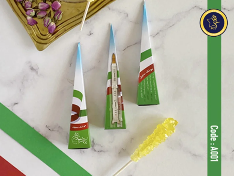 نبات چوبی زعفرانی با بسته بندی اختصاصی سپاه پاسداران موشک سجیل که شامل اطلاعات فنی این دستاورد ملی است